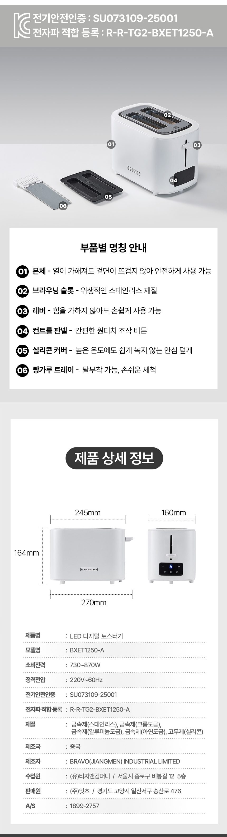 | KC 안전 인증 | [전기용품] 안전인증 대상 품목으로 아래의 국가 통합인증 필함.인증번호 : SU073109-25001(해당 인증 검사 정보는 판매자가 직접 등록한 것으로 등록 정보에 대한 책임은 판매자에게 있습니다.) [방송통신기자재] 적합등록 대상 품목으로 아래의 국가 통합인증 필함.인증번호 : R-R-TG2-BXET1250-A인증일자 : 2025-01-23(해당 인증 검사 정보는 판매자가 직접 등록한 것으로 등록 정보에 대한 책임은 판매자에게 있습니다.) |
